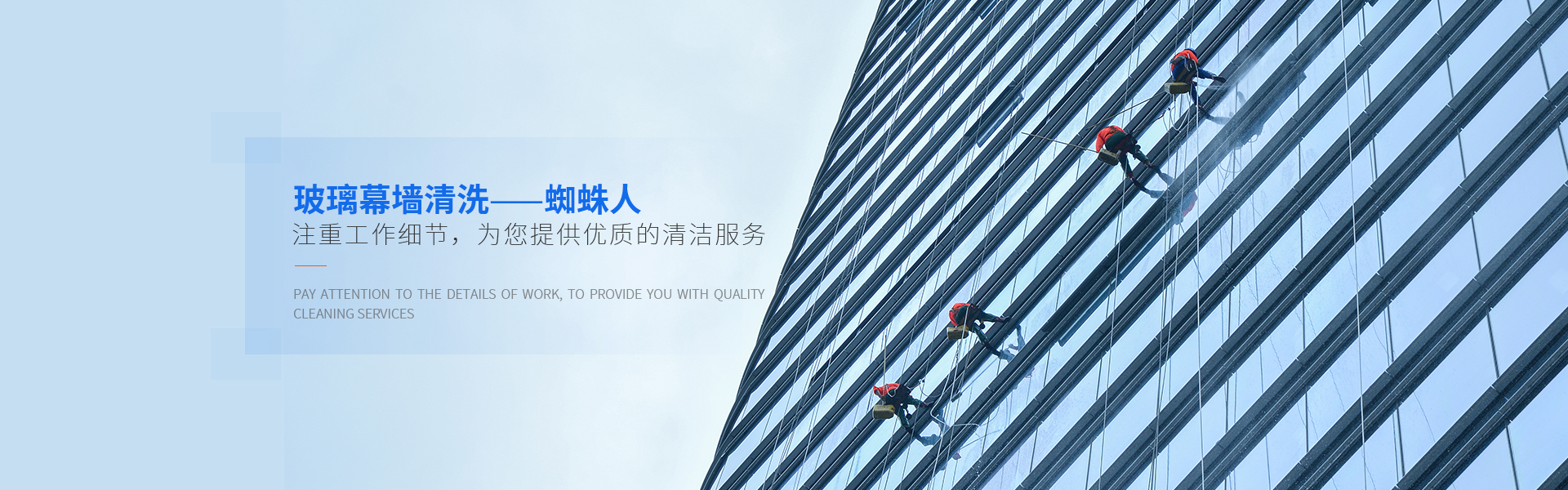 專業(yè)從事高空外墻清洗、外墻翻新、外墻防水等高空服務(wù),服務(wù)眾多知名建筑,擁有完善的服務(wù)體系與資質(zhì)認(rèn)證。